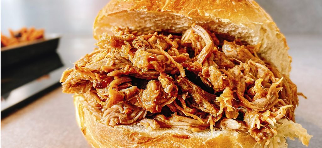 Applewood-smoked Pulled Pork Collar, slowly cooked for 16 hours. Seasoned with our signature Texas-style BBQ rub. Delicious.
